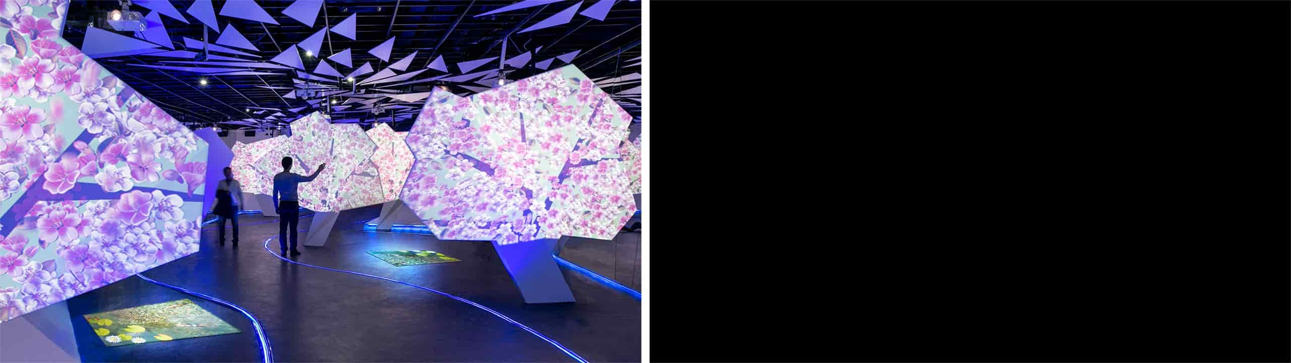 The peach blossom garden; everyone knows this ancient legend of a paradise on earth here in ChangeDe. We bring a thousand year old dream to life, in a futuristic space with engaging interaction. Floating peach blossoms, swarming ponds and vivid panoramas react naturally to the visitors' gestures, revealing the strive for a harmonic city from the perspective of ancient wisdom.