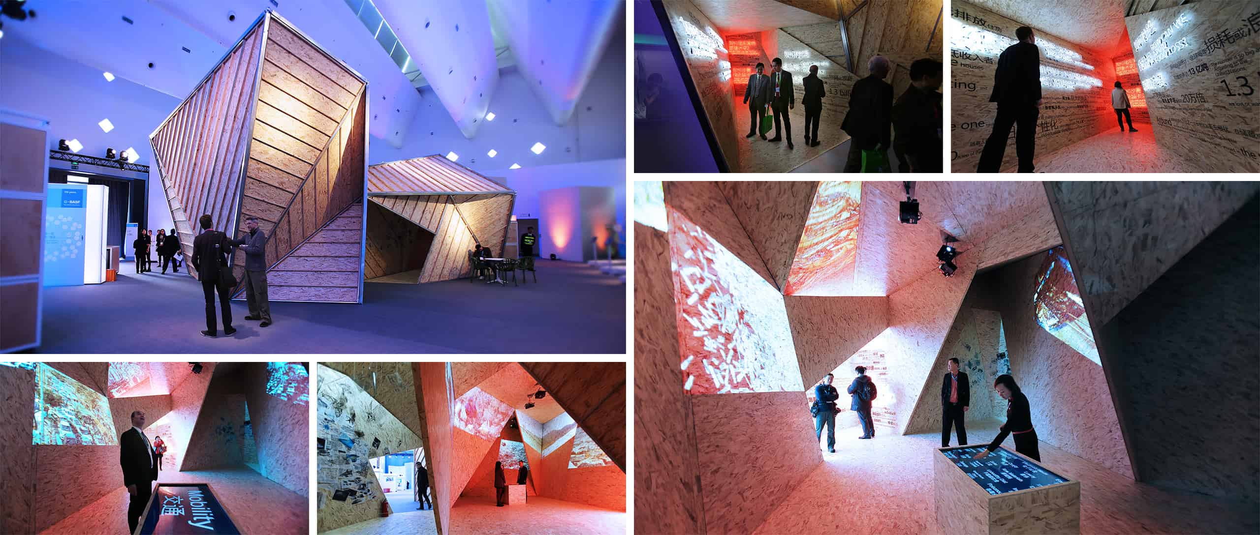 We built a pavilion for an unknown future. BASF, the largest chemical company in the world, is continuously on the search for solutions that bring us closer to ecological sustainability. In the center of their traveling exhibition we created a structure beyond description, that introduces the public to the challenges we face and stimulates discussion and solution finding.
