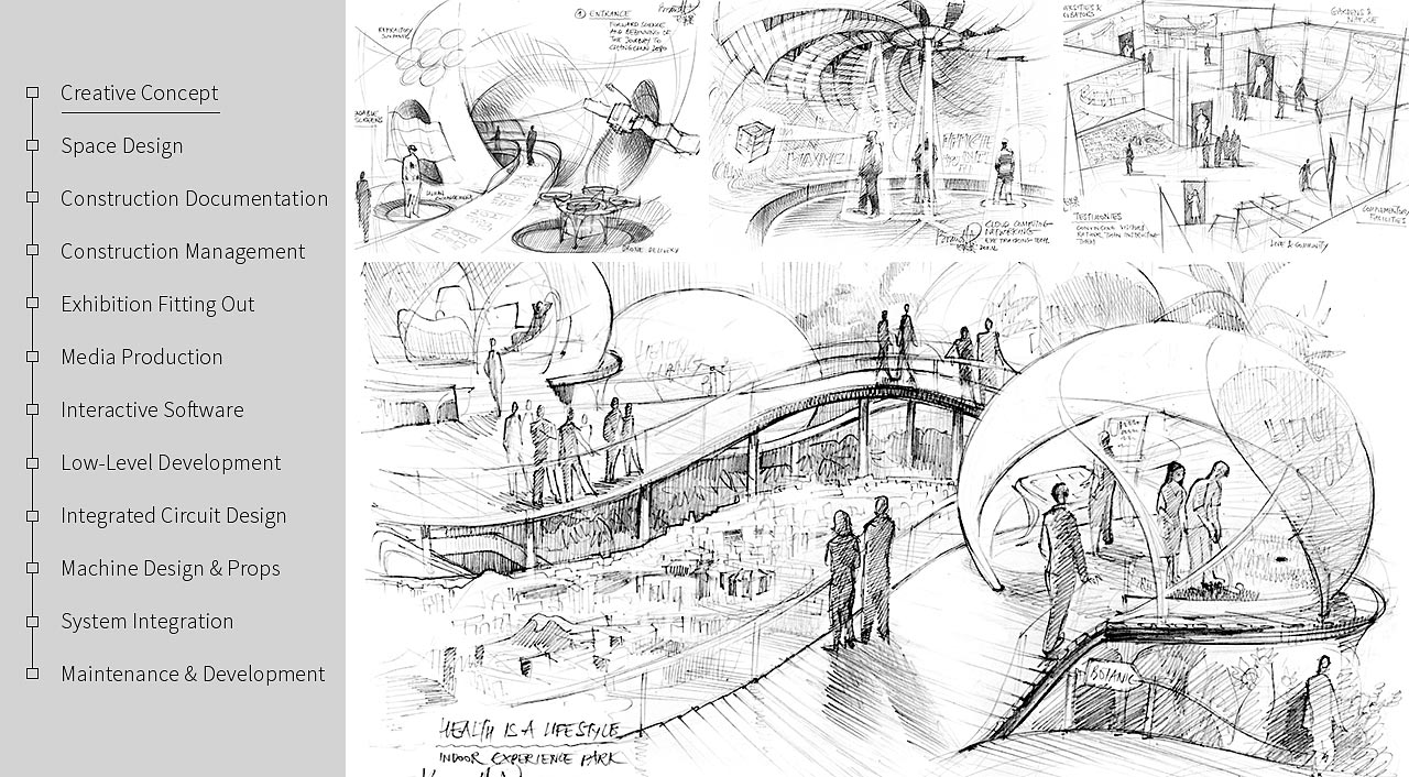 To us, each and every exhibition project is a unique mission. It begins with thorough ideation and ends with rigorous implementation so that creative ideas can become truly inspiring visitor experiences. Building a successful exhibition requires the well-calibrated collaboration of a multitude of different disciplines, where every designer, interpreter, technician and programmer, every engineer, media director, and manager upholds a relentless attitude of innovation. Ever new technologies are emerging and quality expectations are constantly on the rise. The global exhibition industry is evolving fast, and we are determined to be the ones who lead the quest to redefine "The Next Exhibition Standard".