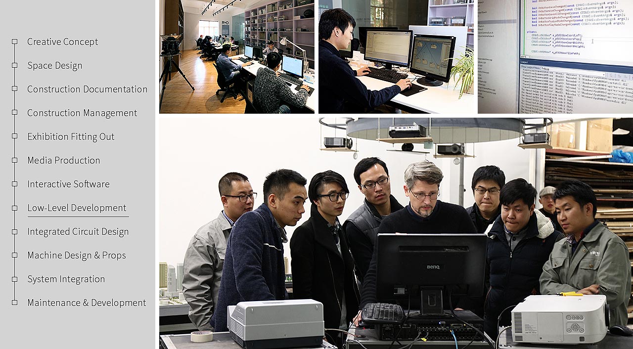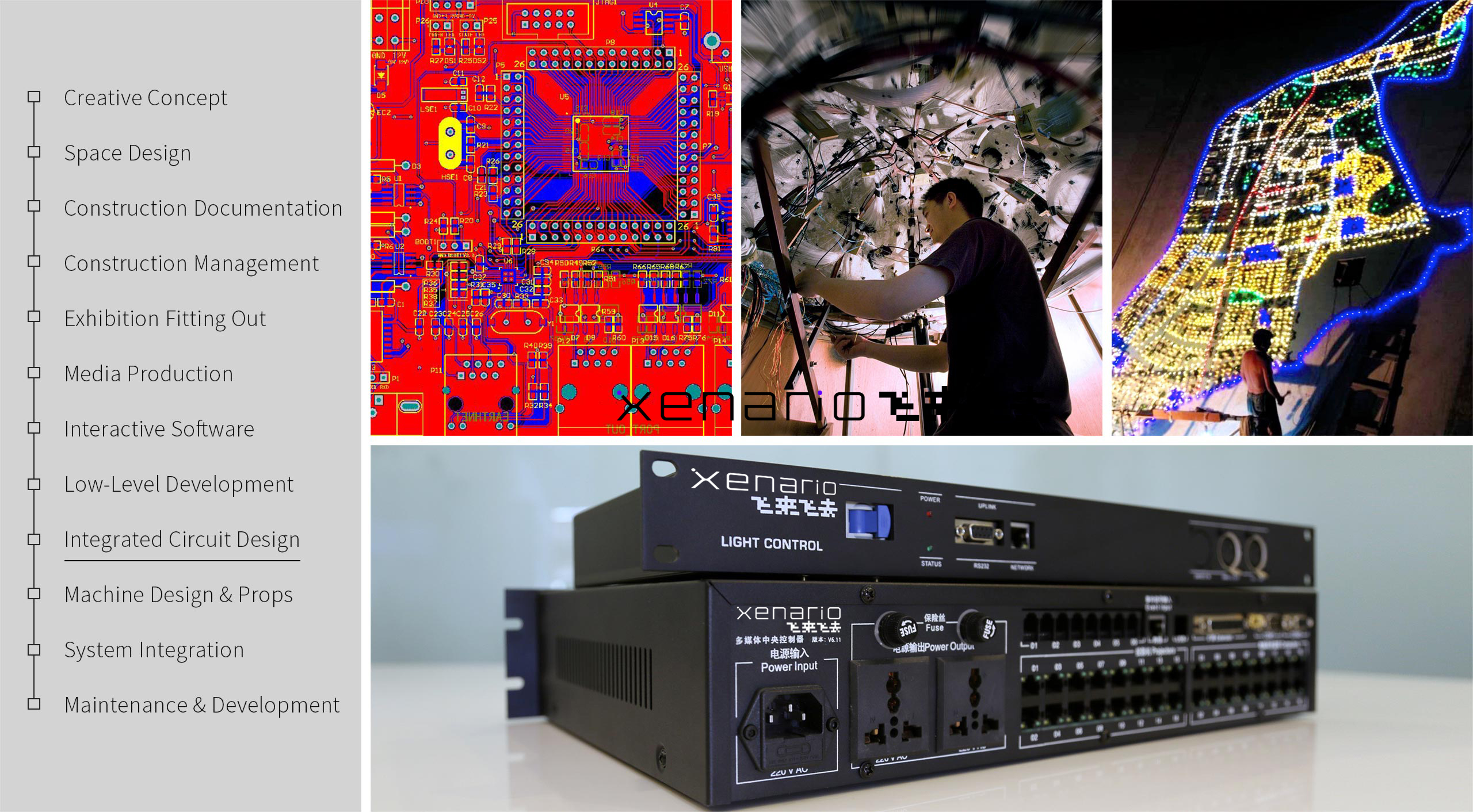 From A to Z. Xenario is a full service exhibition design and production company. We begin by closely working with our clients to understand their unique requirements, thoroughly study the subject matter, analyze the architecture, discern all limitations and explore all opportunities. Rather than simply answering demands, we strive to provide a coherent solution that exceeds our client's expectations. To control quality, we believe it crucial to have all key expertise in-house. A tightly knit team of professionals will handle every detail of the entire process from design, pre-production, documentation down to media production, props, software coding, electronics, construction, fitting-out, system integration all the way through to maintenance. In time, on budget and beyond quality, we are proud to hand over the key to a complete exhibition.